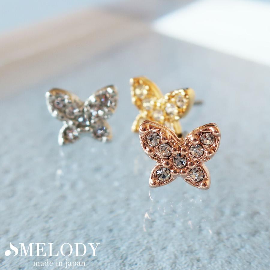 ピアス バタフライ 蝶 モチーフ キレイめ パヴェ ラインストーン ギフト チタン スタッドピアス ブランド シンプル ゴールド シルバー ちょうちょ プレゼント 夏 Pi 90 日本製 Melody Accessory 通販 Yahoo ショッピング